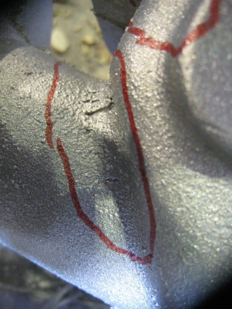 ※この写真が表面に露出した引け巣です。本来はこの割れがありません。