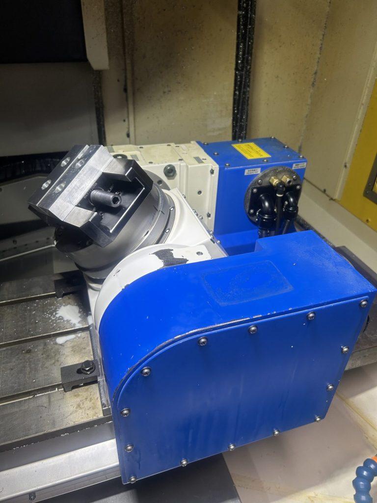 こちらのテーブルが傾斜、回転することにより、多方向からの加工がワンチャッキングで行えます。
