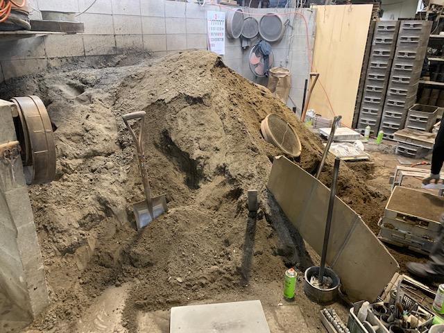 この砂の山が、私たちのものづくりを支える「生型砂」です。職人が日々、この砂の状態を見極め、調整することで、高品質な鋳型が生み出されます。砂を扱う職人の∗∗手先の感覚と経験∗∗が、製品の品質を左右する、まさに職人技が光る工程です。