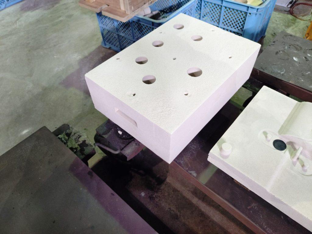 ですのでCo2型と比べてランニングコストが安く、更に硬化性の砂なので高精度で複雑形状の鋳物や大型の鋳物の生産にも向いています。