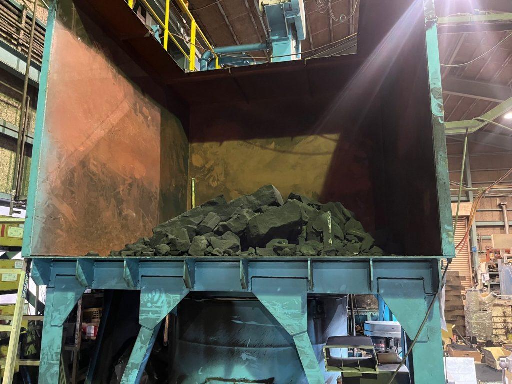 通常、樹脂で固めた砂は一度使うとガチガチになってしまいます。しかし、フラン鋳造で使う砂は、専用の設備で処理することで、不純物を取り除き、再び「鋳物砂」として再利用することができるのです。
